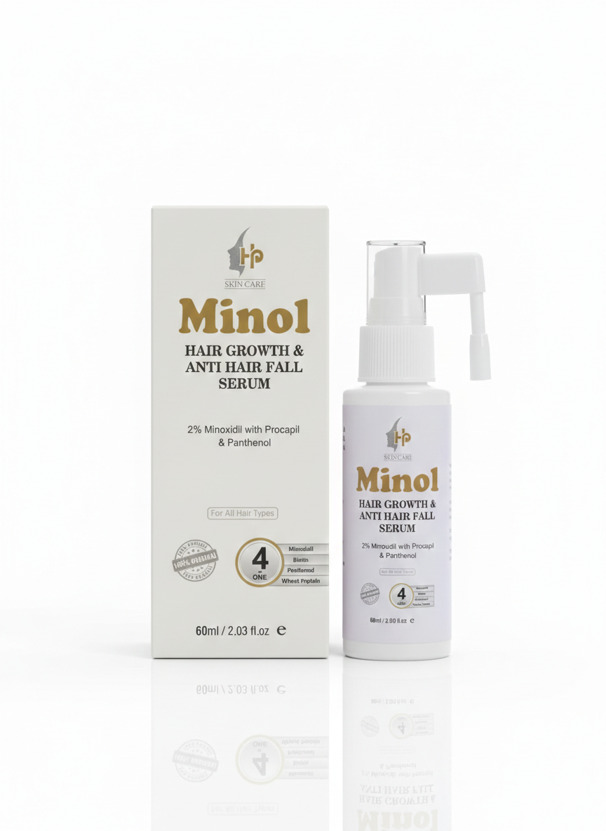 Minol Hair Growth & Anti Hair Fall Serum is an advanced hair regrowth formula specially designed to reduce hair fall and promote stronger, thicker, and healthier hair. Enriched with clinically proven ingredients like 2% Minoxidil, Procapil, and Panthenol, this powerful serum helps stimulate hair follicles, improve scalp health, and support natural hair growth.